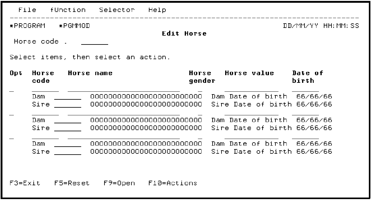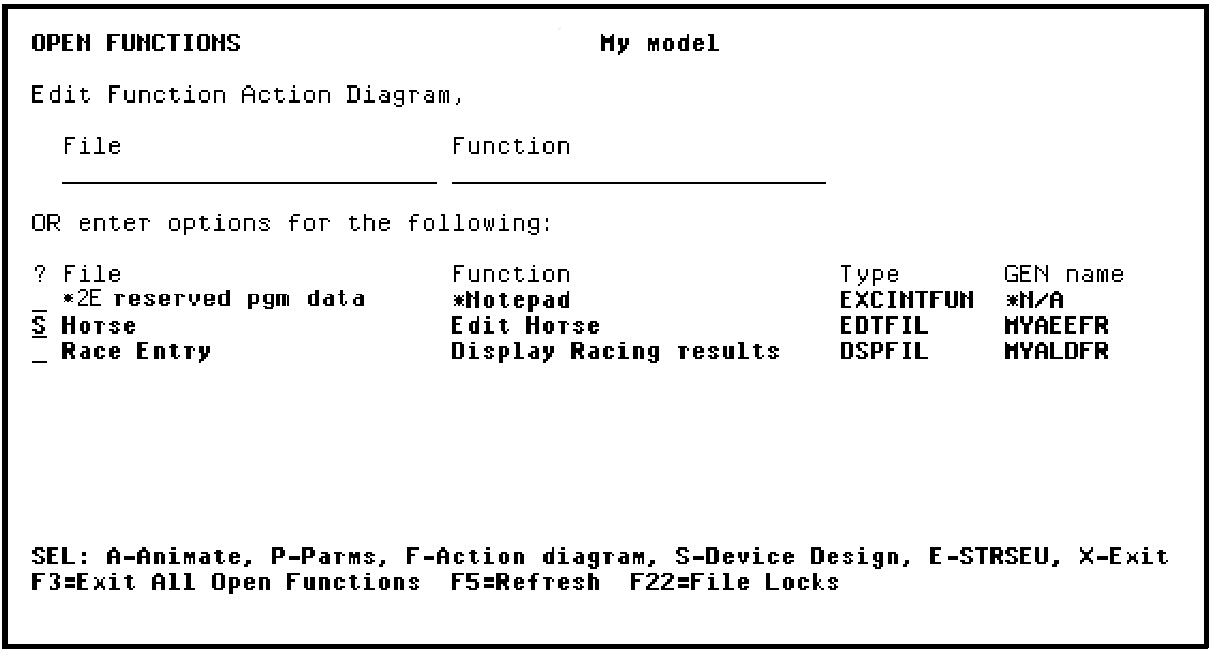 You are now ready to demonstrate the link between the two functions. Type S in the Subfile selector for Edit Horse to display the CA 2E Edit Horse device design.
