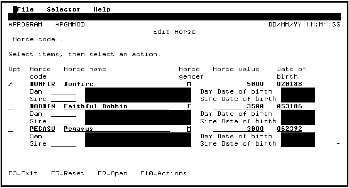To demonstrate the link between the two functions type / against one of the subfile records and press F10 to activate the action bar.