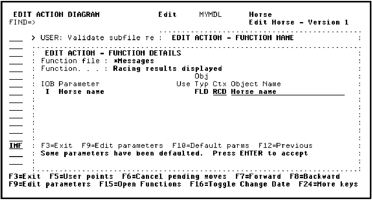 You still need to select this message function for inclusion in the Edit Horse function. Type X in the Subfile selector.