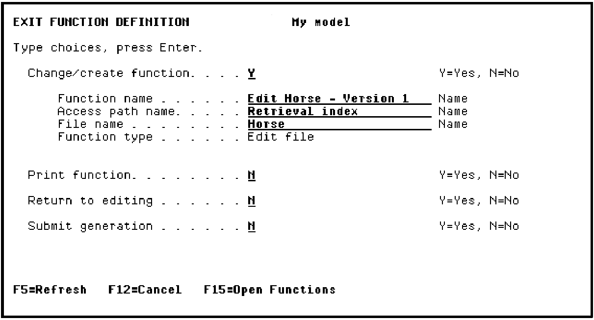 Press F3 to return to the Edit Model Object List panel. Note that a 0 displays to the right of the Subfile selector of the Edit Horse - Version 1 list entry to indicate that it is a non-current version.