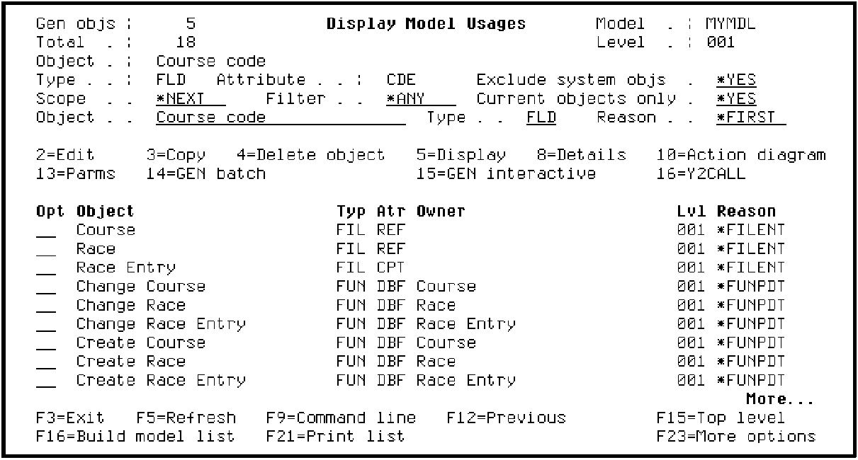 To simulate a change to Course code, you first need to locate it. Since Course code has many usages, an easy way to locate it is to use the positioning options. Type Course code in the Object field and type FLD in the Type field.