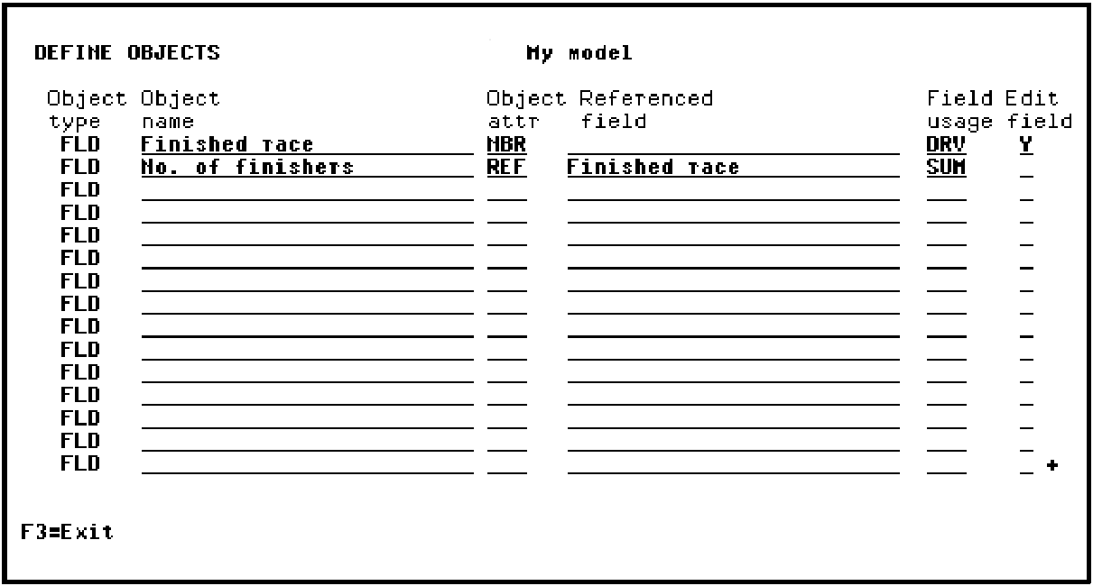 To add the function fields you require, press F10 to display the Define Objects panel. You can define both function fields at this point.