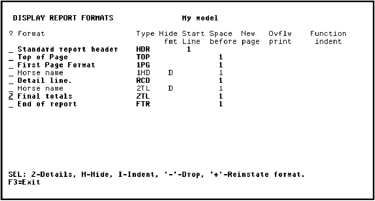 Press Enter to display the Edit Report Format Details screen for the Final totals format.