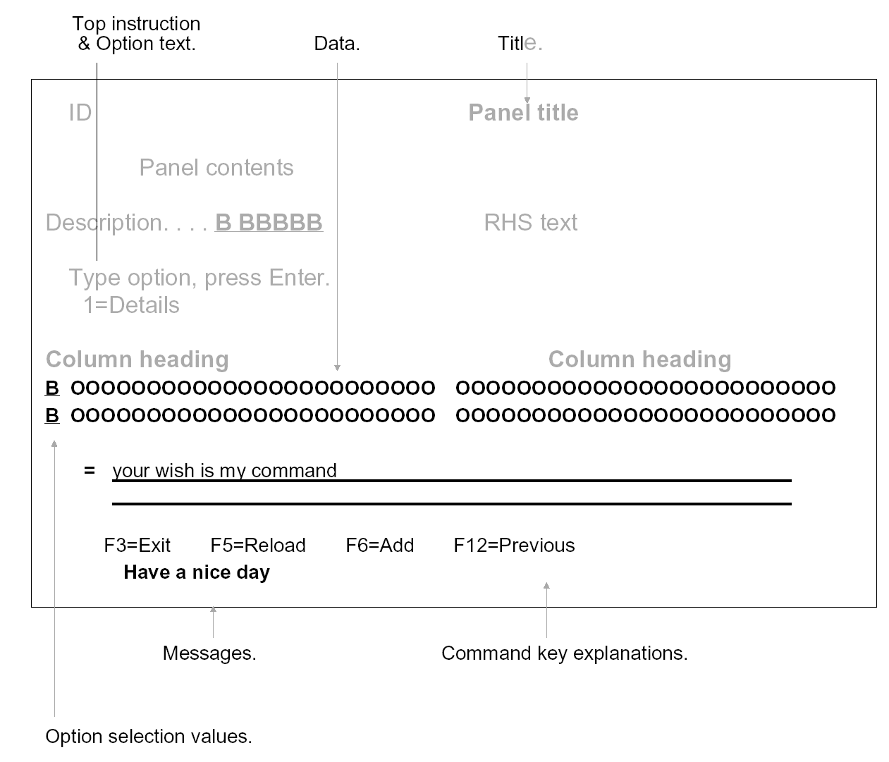The CUA panel layout standard can be interpreted either strictly, leaving off all ancillary data such as date, time, or operator identification, or more leniently, keeping the CUA components in the standard places, while adding in the extra information.