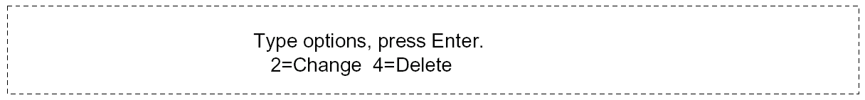 When specifying selection options, you should consider several things. If there is a selection option column, include a summary definition of the selection values, on the line above the subfile column headings. Precede each explanation with n=. Double-space the explanations without punctuation. If there are more key explanations than will fit on the available space, use F24 to display the extra values. Also, include a line above the definition line, containing the prompt text, which is usually Type options, press Enter.