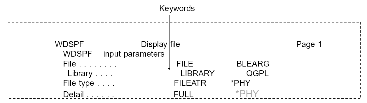 If the items on shown on a report correspond to command parameters, show the keywords such as: