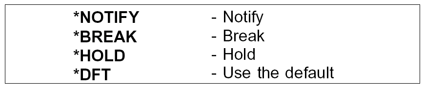 Where two values are opposites appearing in a list, use *NO as a prefix for the antonym. For example, *SRC/*NOSRC, *SECLVL/ *NOSECLVL.