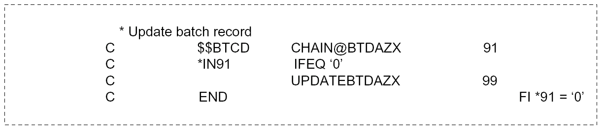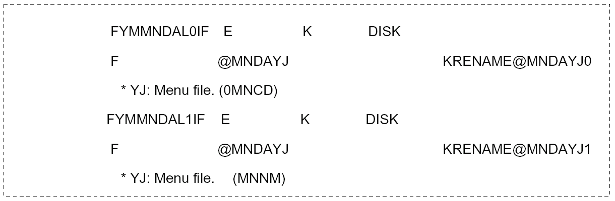Where a format has to be renamed, for example, because it appears twice in a program, it should be renamed to a name of the form @MMMMx, where @MMMM was the original format name, and x is the suffix of the logical file that is being renamed. Field names can likewise be renamed from yyMMMM to yxMMMM.
