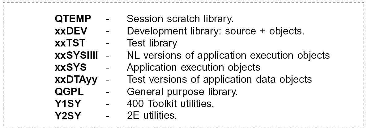 Live production libraries should be of type *PROD. Development libraries should be of type *TEST: they may then be safely used in conjunction with live data under debug if UPDPROD(*NO) is specified when using the OS/400 Start Debug (STRDBG) command.