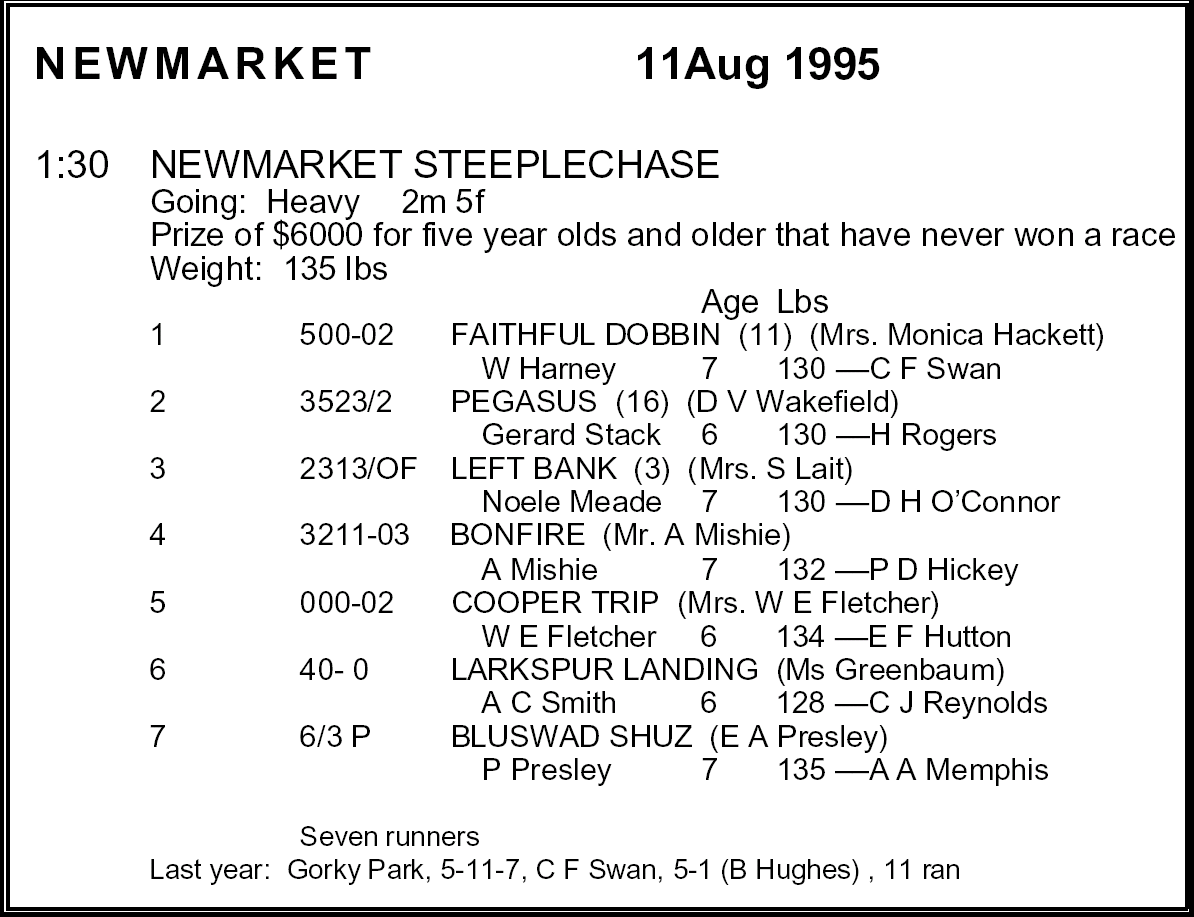 This tutorial demonstrates how to use CA 2E to address all phases of the life cycle in the development and maintenance of a horse race application. A sample horse racing form is illustrated below.