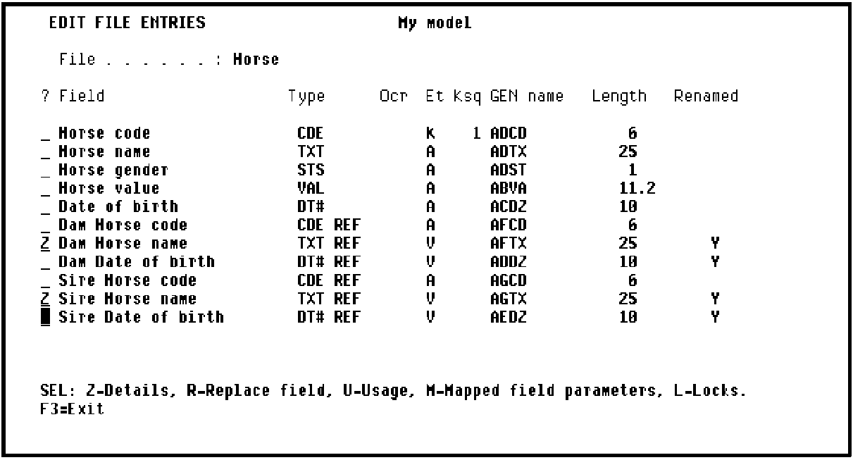 To select the fields to be renamed you will zoom against the relevant fields on the Edit File Entries panel. Type Z to select the fields to be renamed.