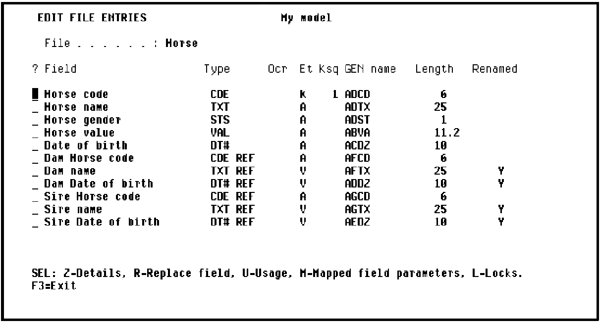 When you have renamed the selected fields, press Enter to return to the Edit File Entries panel. The panel has been updated to show the new field names.
