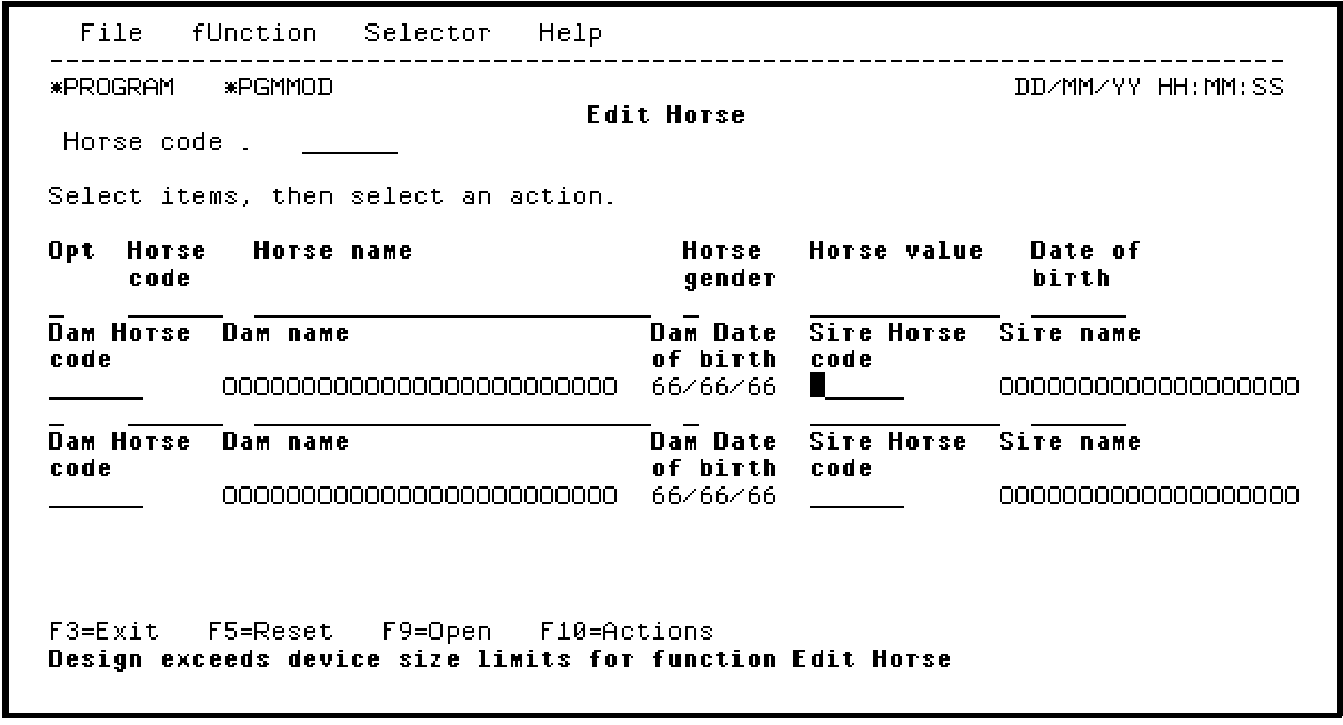 Press F9. The subfile record format now displays only one HORSE record.