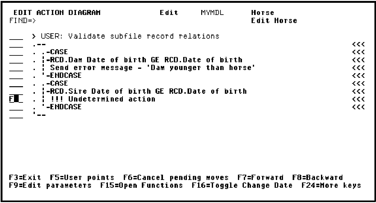 In this step you will define the message function to be called when the sire is younger than the horse. The entire process will take place within the action diagram. Note that you could have defined both message functions in this way.