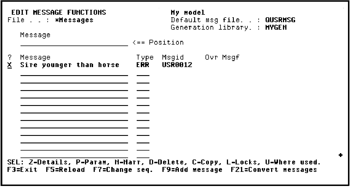 You can now select the message function to be executed when the second condition is satisfied. Type X to select the message function for the action diagram.