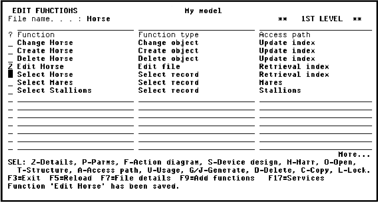 From the Edit Functions panel, type Z against the Edit Horse function.