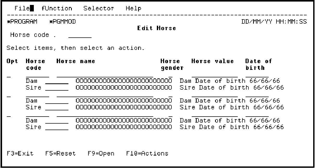 CA 2E has already updated the Edit Horse panel and added the Zoom#1 action to the action bar on the Edit Horse panel. Change the text from Zoom#1 to Display Racing results to provide a better explanation to the end user.