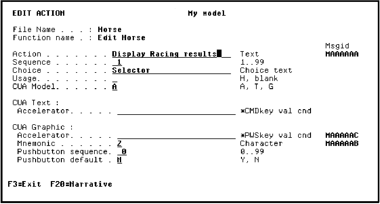 Update the text for the Zoom#1 action to read "Display Racing results."