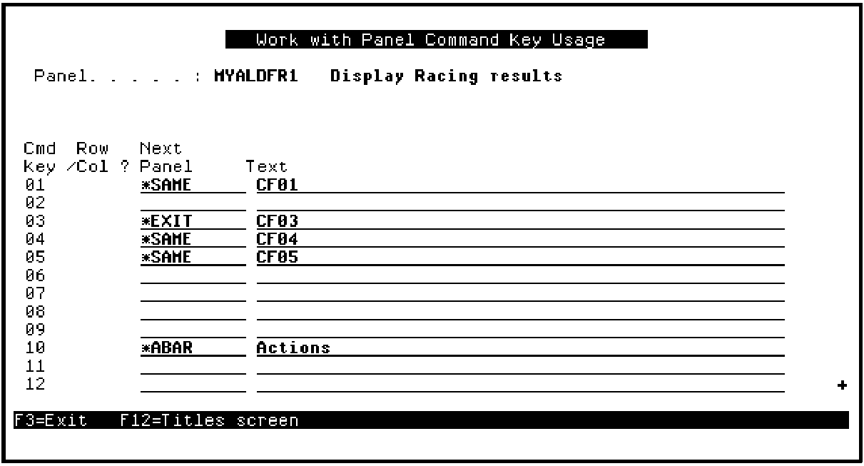 If you had not converted the command key navigation when you converted the Display Racing results function, only the F3 command key would be defined. This is done by default to provide a way to return to CA 2E that you can easily remember. You can also return to CA 2E by pressing the Home key.