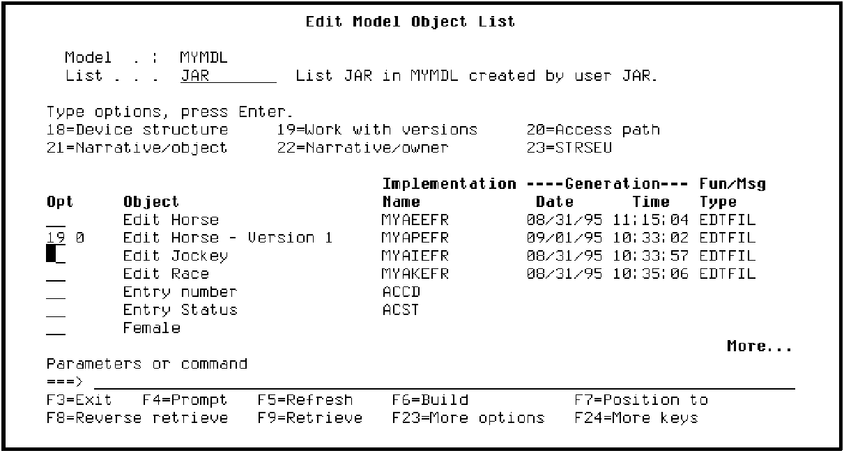 First display the Work with Version panel by typing 19 in the Subfile selector for either version of the Edit Horse function.