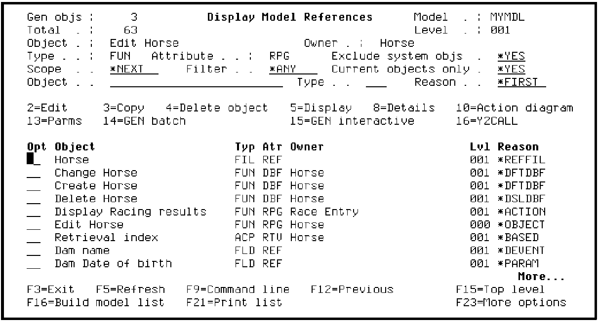 Note: Most of the options provided on the Display Model References panel are beyond the scope of this tutorial. However, you can use the online help if you would like to experiment further. Or, refer to the CA 2E module, Generating and Implementing Applications.