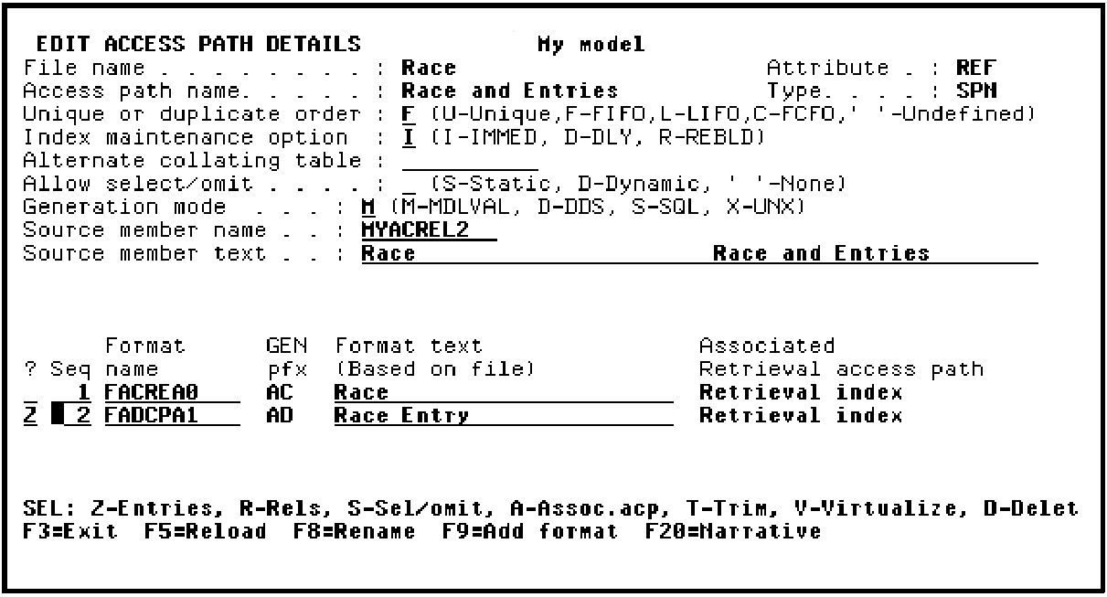 Type Z against the Race Entry access path format.