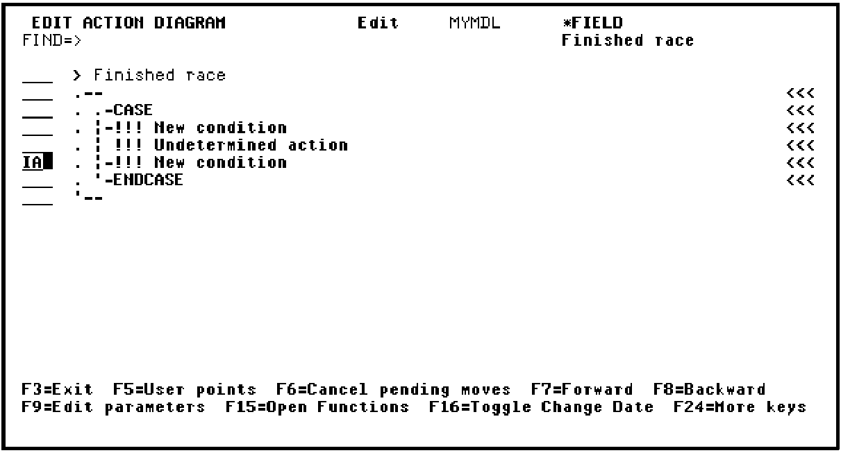 Add another action to the CASE construct by typing IA against the second !!! New condition.
