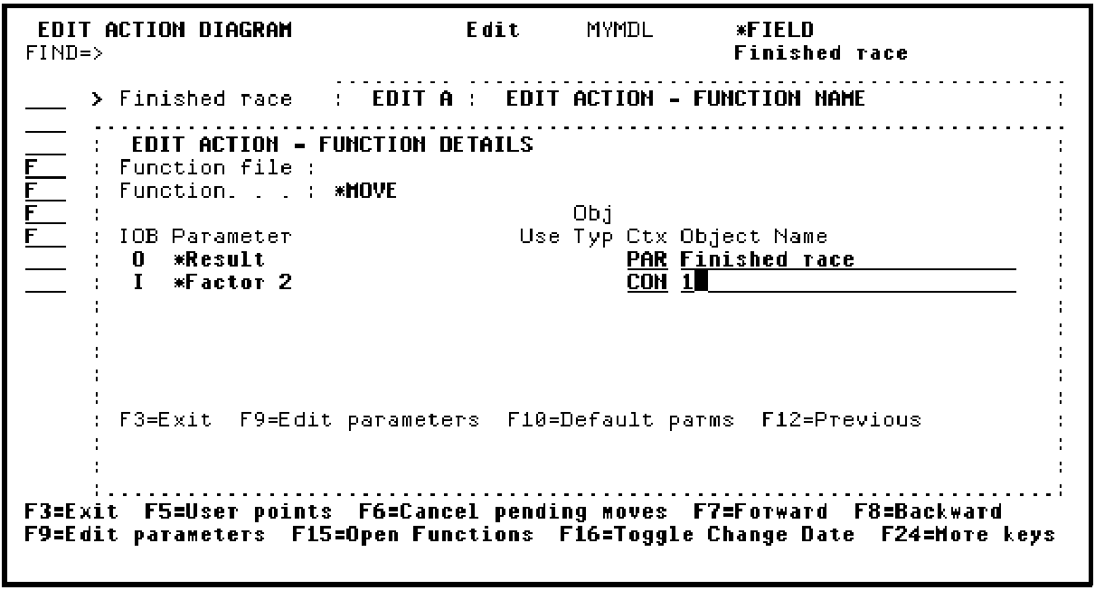Leave the Function file field blank to indicate a built-in function and type *MOVE.