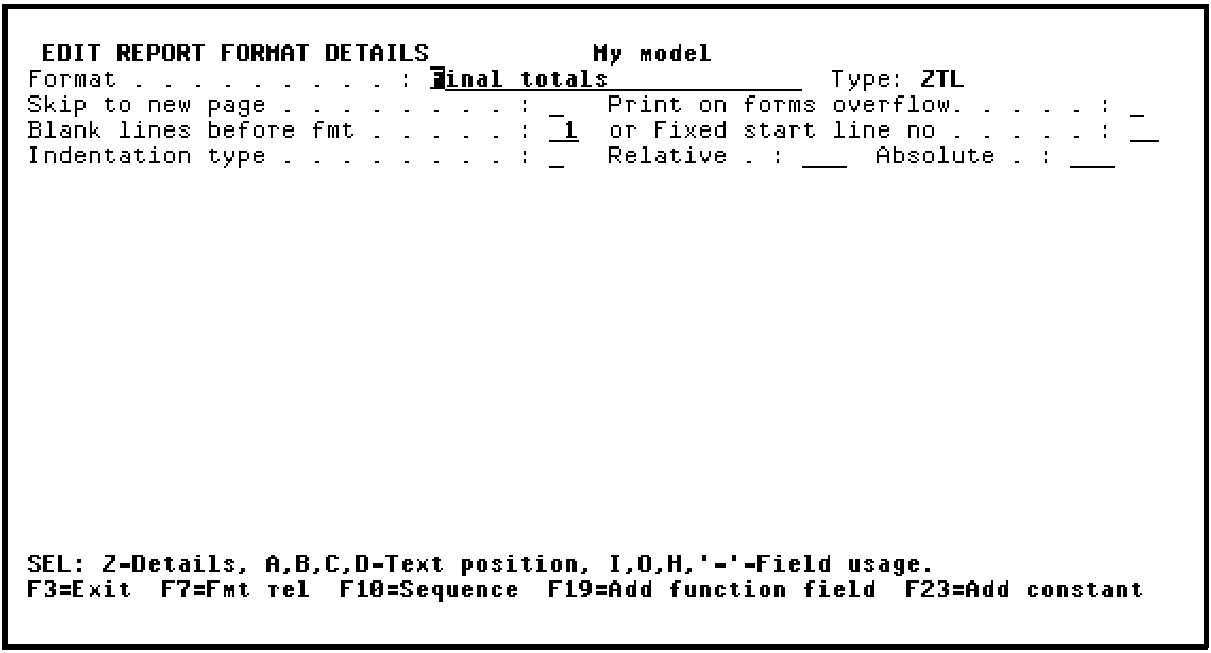 Press Enter to display the Edit Report Format Details screen for the Final totals format.