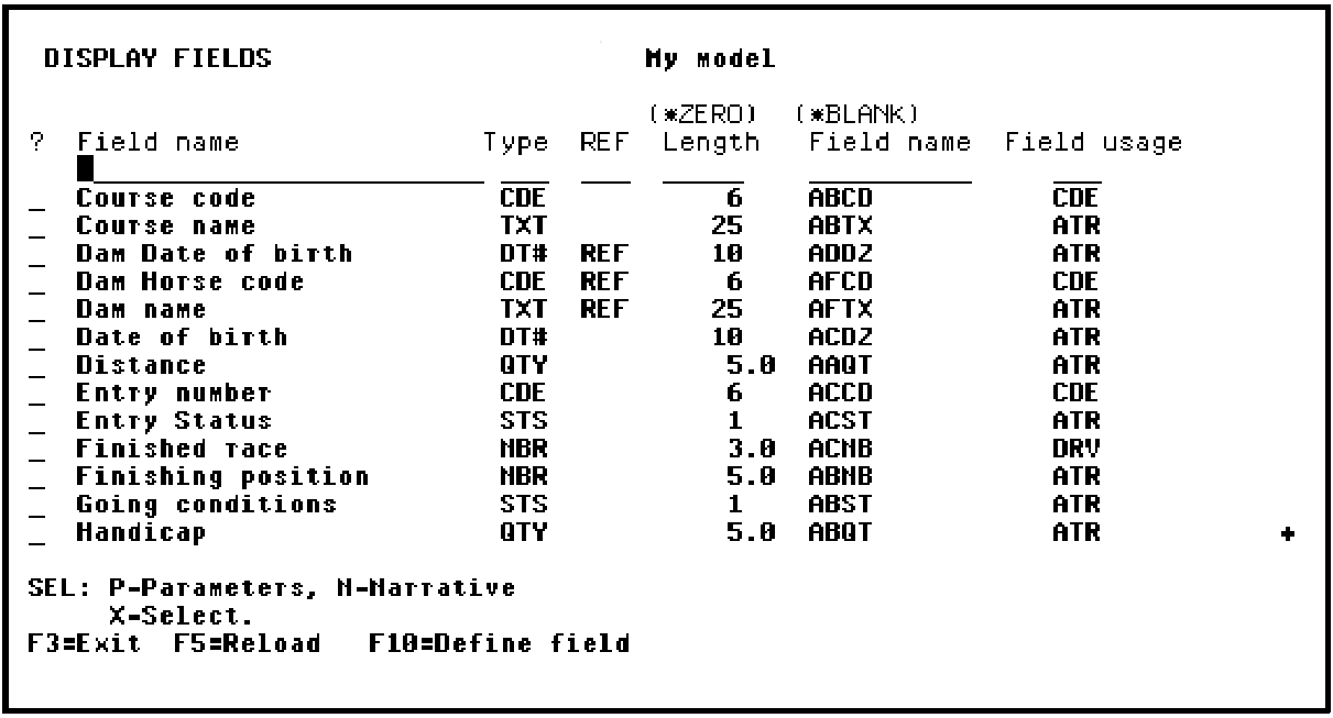All fields defined in your model are displayed, including the two function fields you defined for the Edit Race and Entries function (EDTTRN).