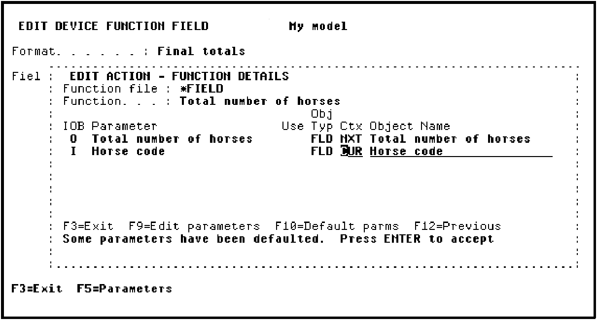 Press Enter to accept the parameters and return to the report device design.