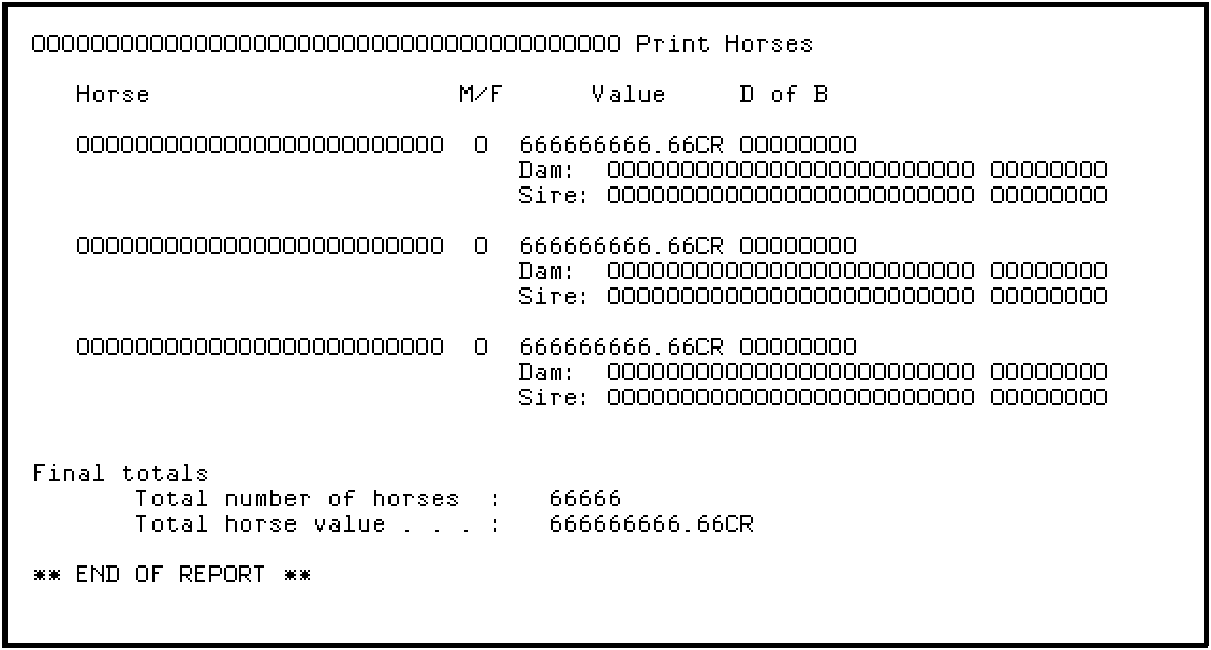 Note that to produce this design you will need to drop the Top of Page format (TOP) and the First Page Format (1PG) using the method you used to drop the 1HD and 2TL formats previously; hint, press F17.