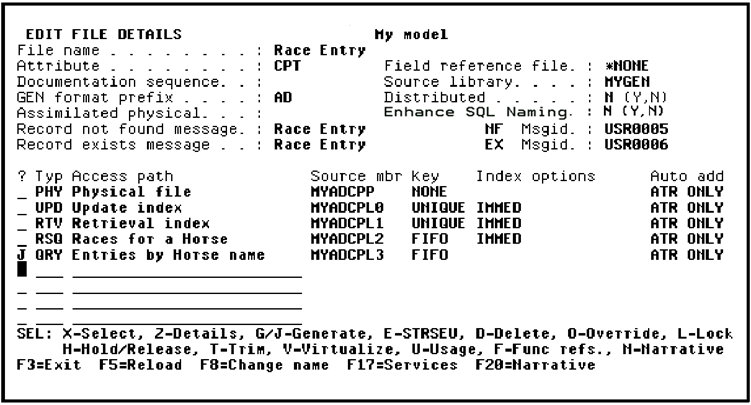 The access path you have just defined must be generated and compiled before running the application. You have the option to add it to the job list now. To do so, type J next to the QRY access path.