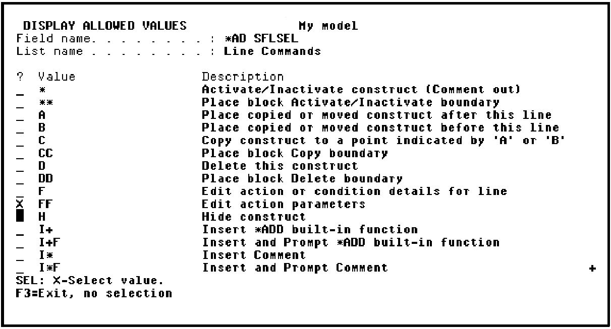 Report Functions › Introduction to the Print Object Function › The Action Diagram Editor Subfile Selector Values