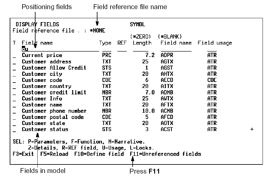 Type D next to each of the fields to be deleted and press Enter.