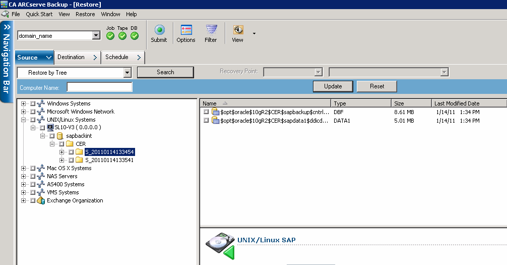 Use the Restore Manager to view detailed information about your backup job. You can view backed up file names and session information.