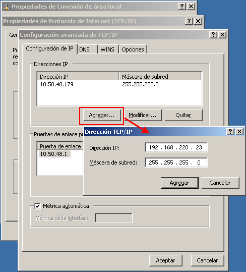 Se guarda la dirección IP adicional y se cierra el cuadro de diálogo Dirección TCP/IP.