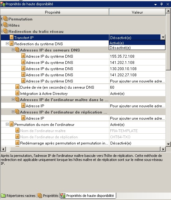- Définissez l'option Transfert IP sur Activé. Vérifiez que l'adresse IP sous Move IP, IP/Masque corresponde à l'adresse IP de serveur de production.