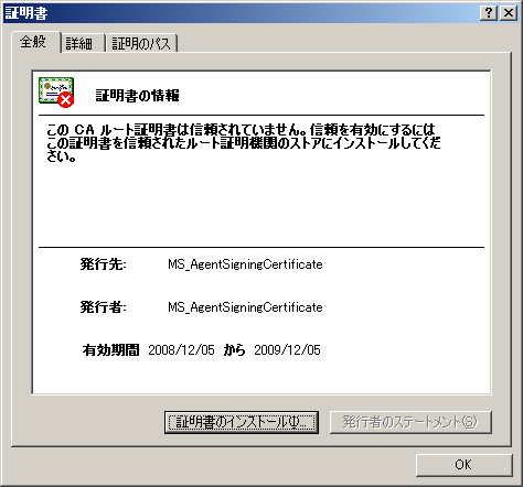 証明書のインストールを確認するように求める確認メッセージが表示されます。