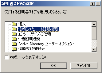 [証明書ストアの選択]ダイアログ ボックスが表示されます。
