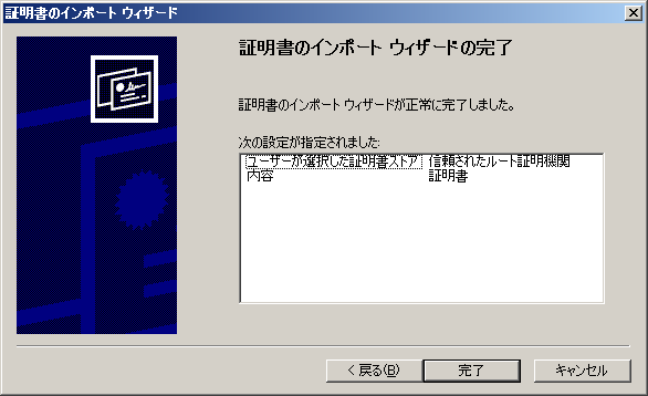 [証明書のインポート ウィザード- 完了]ページが表示されます。