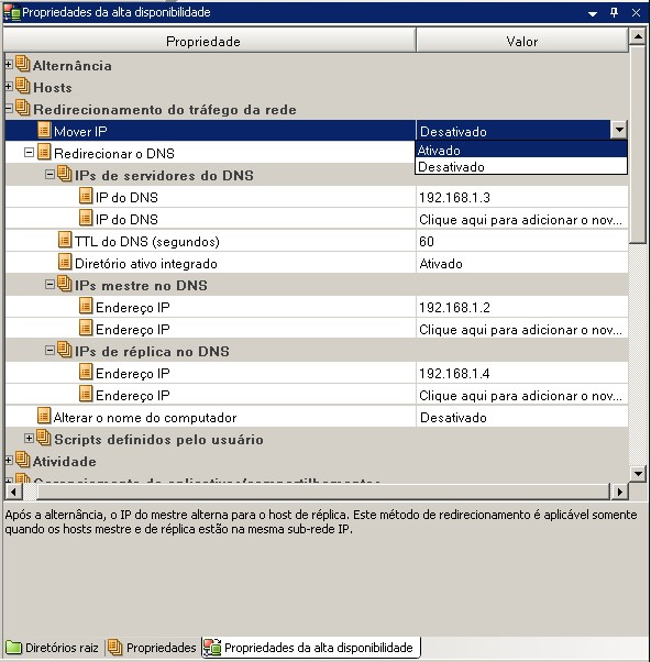 - No painel Estrutura, selecione a guia Alternância e selecione o servidor de réplica como o host da alternância.