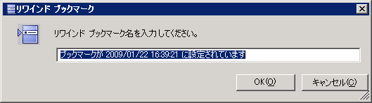 [リワインド ブックマーク]ダイアログ ボックスに表示されるテキストは、[リワインド ポイントの選択]ダイアログ ボックスにブックマーク名として表示されます。 デフォルトの名前には、日付と時間が含まれます。