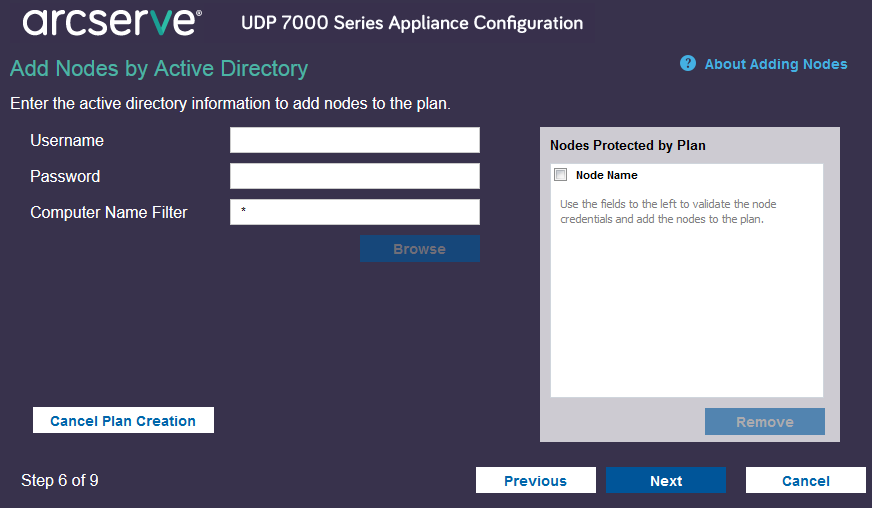 To add nodes that are in an active directory, you must first discover the nodes by providing the active directory details and then adding the nodes to the plan.
