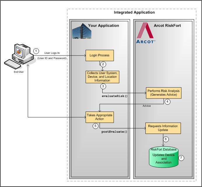 At this stage, your application must call the evaluateRisk() function in riskfortAPI. In this call, you must pass all the user and device information that you collected in the preceding step to RiskMinder.