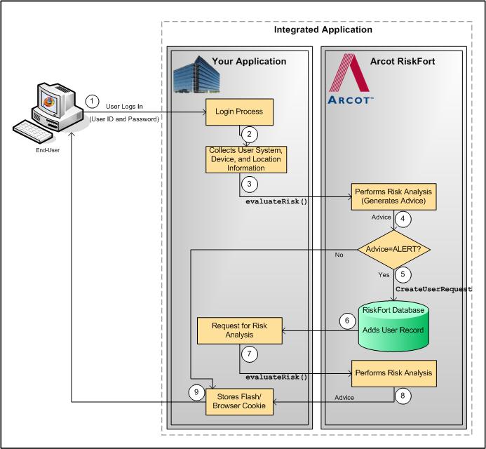 For an ALERT advice that is generated, RiskMinder uses the createUserRequest message in the ArcotUserRegistrySvc Web service to create the user record in the RiskMinder database. With this, the user is enrolled with RiskMinder.