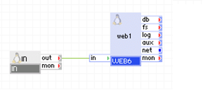 in1 accepts HTTP requests on its external interface and passes them to web1 through its out terminal.