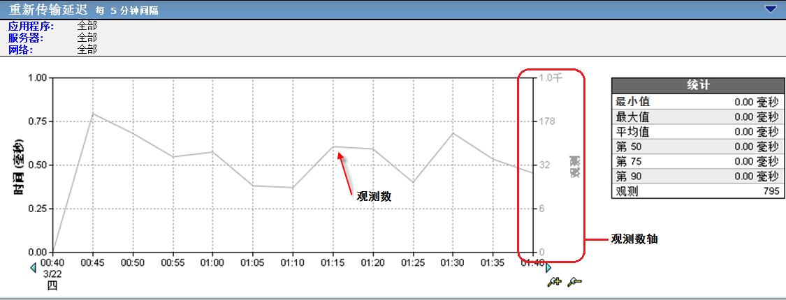 观测计数指明使用率。 观测计数越高,则表示应用程序、服务器或网络的使用率越高。