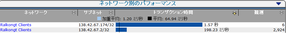 その結果、管理コンソール は、待ち時間の長いリモート リンク上のユーザに対して、ローカル LAN 上のユーザと同じしきい値を適用しません。しきい値は履歴上の極端なパフォーマンスを表します。 たとえば、マイアミのデータ センターにあるアプリケーション サーバで、アプリケーションにローカルにアクセスするユーザとミュンヘン(ドイツ)のリモートサイトからアクセスするユーザがいると考えます。