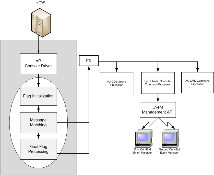 When the UNIFWD flag or other Event Traffic Controller commands are processed, the CA Automation Point Inter Task Communication (ITC) tools queue the message item to the Event Traffic Controller command processor, ensuring that the execution of Event Traffic Controller commands and the continued processing of rules occur asynchronously. Three types of items are then read from the CA NSM Event Manager queue: messages, commands, and SNMP traps.